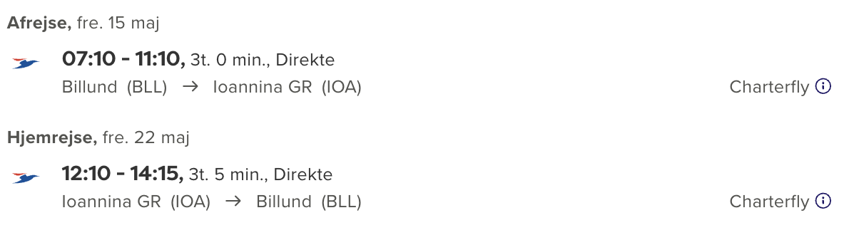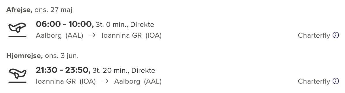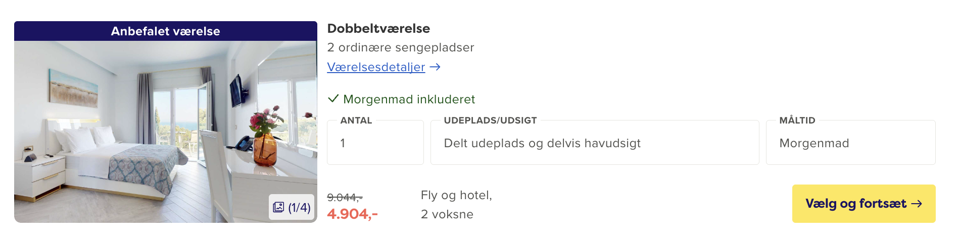 Hvis rejsen er med “Vis rejse” link, så er der tale om en pakkerejse, hvor fly og hotel bestilles på en gang.