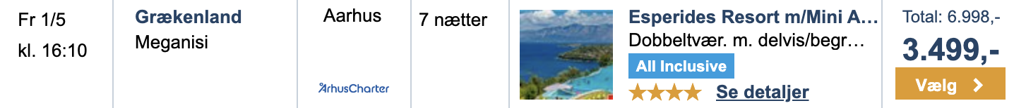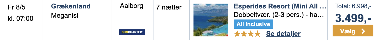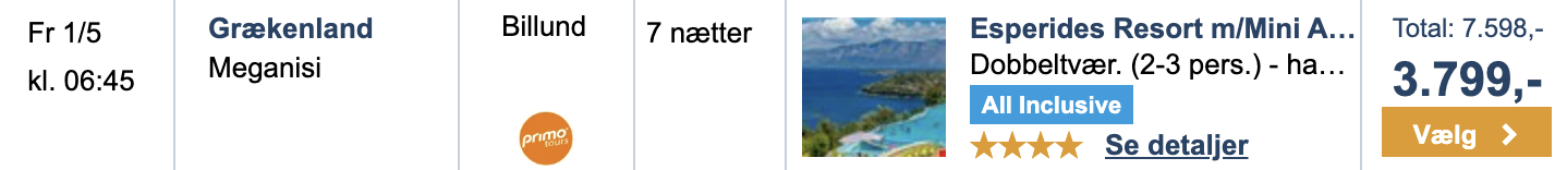 Hvis rejsen er med “Vis rejse” link, så er der tale om en pakkerejse, hvor fly og hotel bestilles på en gang.