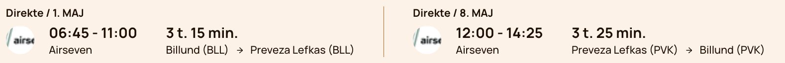 Vi har fundet gode tilbud fra Aalborg, Aarhus og Billund til Meganisi.