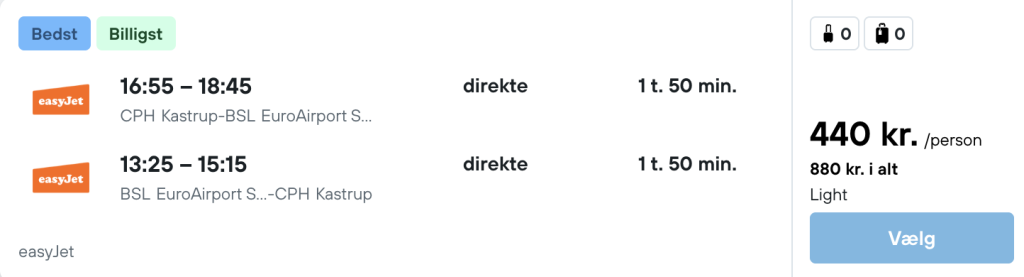 På vores flysøgningsmaskine har vi fundet billige flybilletter fra København til Basel: