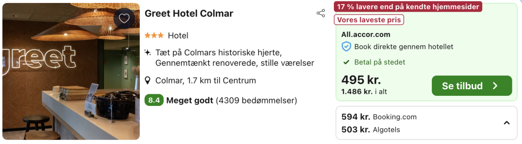 4 dage i Colmar for kun 1.183,- per person inkl. fly og godt 3-stjernet hotel med god beliggenhed!