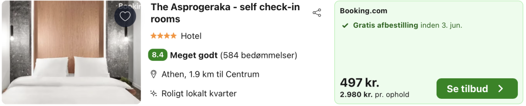 The Asprogeraka – self check-in rooms ligger centralt i Athen i et roligt kvarter tæt på byens historiske seværdigheder og lokale byliv. Overnatningsstedet tilbyder moderne og enkelt indrettede værelser med fokus på funktionalitet, komfort og en problemfri self check-in-oplevelse. Værelserne er lyse og stilrene med gode senge og praktiske faciliteter, hvilket gør stedet velegnet til både korte ophold og storbyferier.