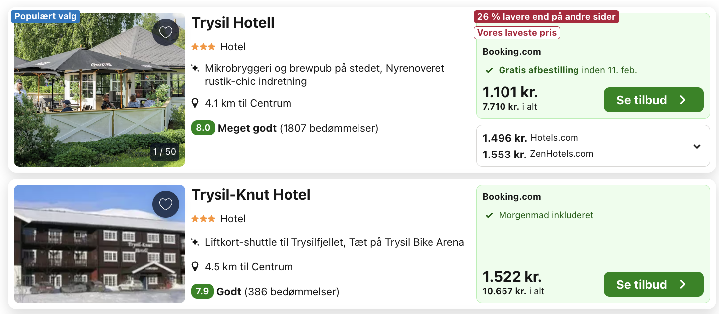 Tjek altid datoerne for at se om de passer sammen før du bestiller, da vi kan have begået fejl. Tjek derudover også prisen på begge ting før du bestiller det ene, da prisen kan have ændret sig.