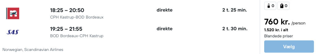 Vi har på vores flysøgningsmaskine fundet billige billetter fra København til Bordeaux.