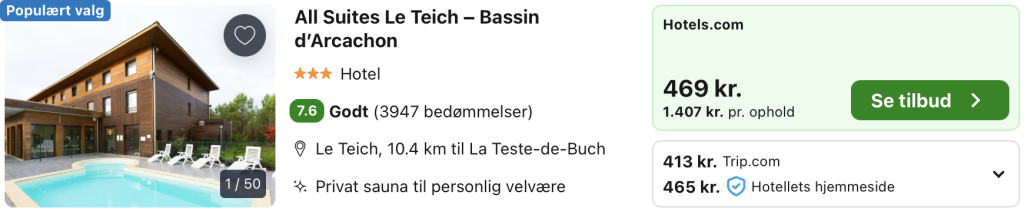 4 dages forlænget ved La Teste-de-Buch i Sydvestfrankrig for kun 1.380,- inkl. fly og godt 3-stjernet hotel med pool!