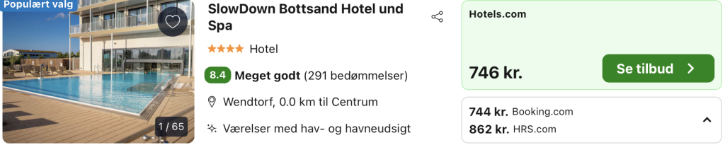 Husk at logge ind / oprette en gratis bruger på trivago samt hos Hotels.com. Derved opnås den bedste pris!