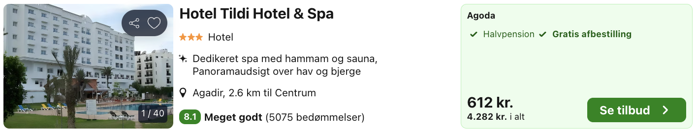 1 uge i Agadir med halvpension for kun 3.410,- per person inkl. fly og godt 3-stjernet hotel med pool!