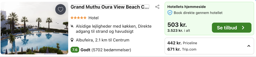 Hvis rejsen er med “Vis rejse” link, så er der tale om en pakkerejse, hvor fly og hotel bestilles på en gang.