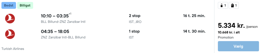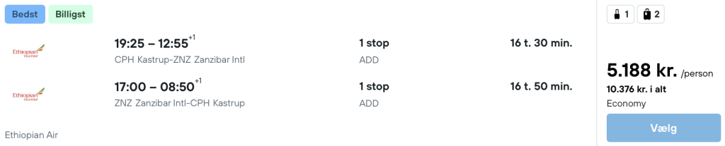 På vores flysøgemaskine har vi fundet billige billetter fra København og Billund til Zanzibar i april måned.