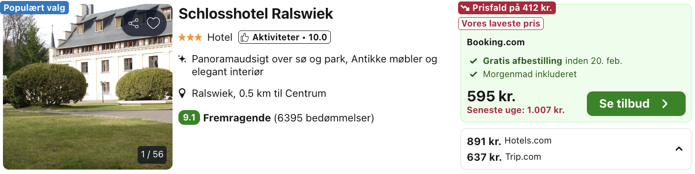 Bemærk: Den samlede pris for opholdet er 595,- for 2 personer i et dobbeltværelse, hvilket svarer til 298,- per person. Der kan være mindre prisforskelle på mobil og pc. Undersøg med fordel, hvor det er billigst inden bestilling. Rejs365 er ikke et rejsebureau, men en rejseside, der finder gode tilbud! – Vi modtager kommission, men det påvirker ikke din pris! Læs mere her