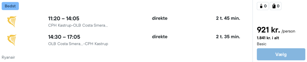 Vi har fundet billige flybilletter fra København til Sardinien:
