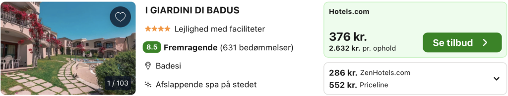 1 uge på Sardinien for kun 1.925,- per person inkl. fly og godt 4-stjernet hotel med pool!