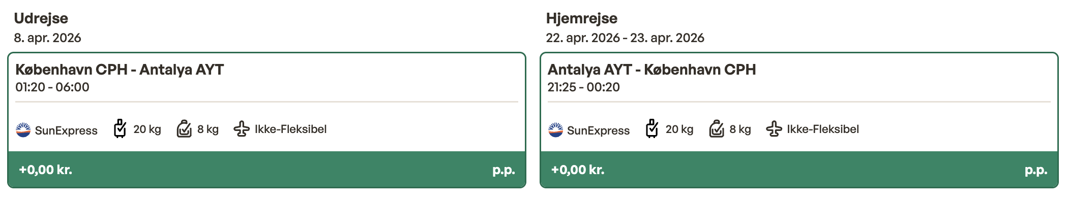 Hvis rejsen er med “Vis rejse” link, så er der tale om en pakkerejse, hvor fly og hotel bestilles på en gang.