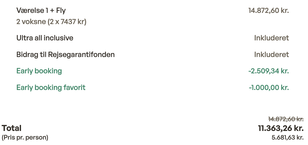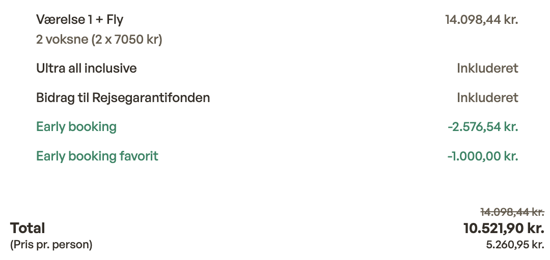 Bemærk: Sunweb viser den samlede pris for 2 personer.