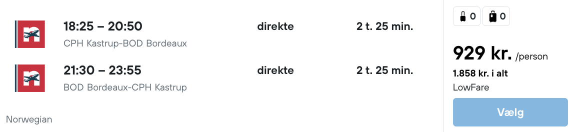 Vi har fundet billige fly fra København til Bordeaux.
