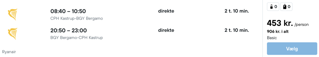 Flyprisen inkluderer kun en lille taske, men bagage kan tilkøbes.