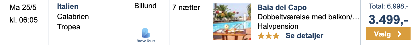| Bemærk: Travelmarket og Bravo Tours viser nogle steder prisen for 2 personer