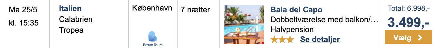 Hvis rejsen er med “Vis rejse” link, så er der tale om en pakkerejse, hvor fly og hotel bestilles på en gang.
