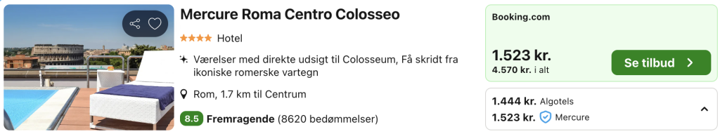 4 dage i Rom for kun 2.866,- per person inkl. fly og super lækkert 4-stjernet hotel i hjertet af Rom. Hotellet har tagterrasse med pool og poolbar, hvorfra der er fantastisk udsigt over Colosseum og Roms tage.