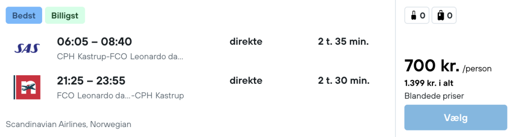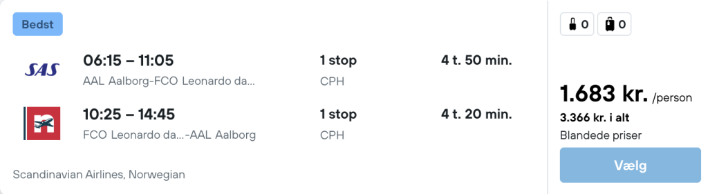 Hvis rejsen er med “Vis rejse” link, så er der tale om en pakkerejse, hvor fly og hotel bestilles på en gang.