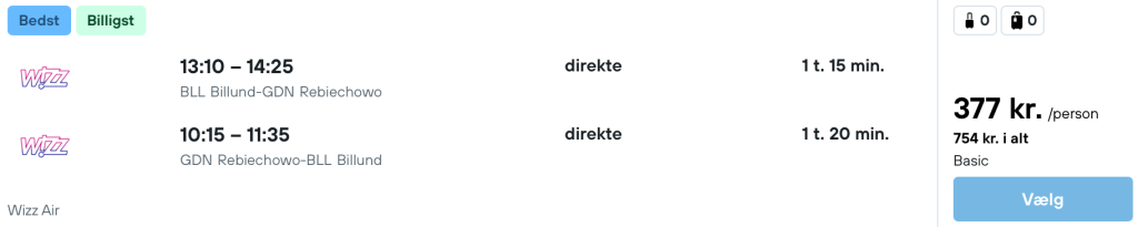 Vi har fundet billige flybilletter fra København og Billund til Gdansk: