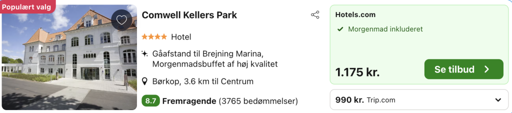 Den samlede pris for opholdet er 990,- for 2 personer i et dobbeltværelse, hvilket svarer til 495,- per person. Der kan være mindre prisforskelle på mobil og pc. Undersøg med fordel, hvor det er billigst inden bestilling. Rejs365 er ikke et rejsebureau, men en rejseside, der finder gode tilbud! – Vi modtager kommission, men det påvirker ikke din pris! Læs mere her |