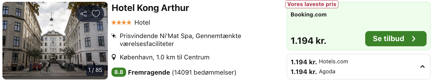 | Bemærk: Prisen for opholdet er 1.194,- for 2 personer i et dobbeltværelse med morgenmad, hvilket svarer til 597,- per person.