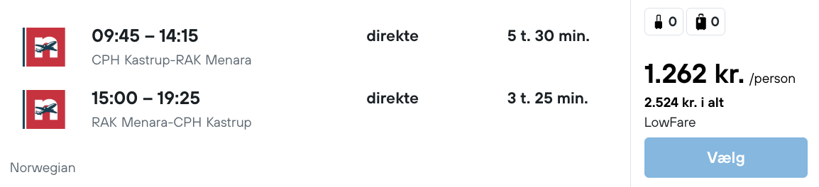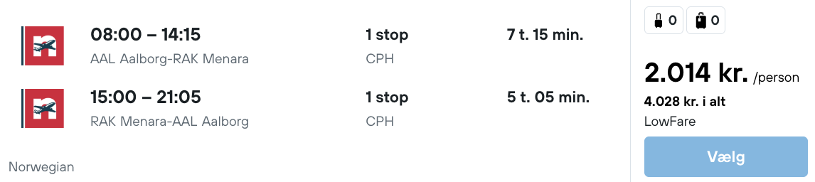 Flyprisen inkluderer kun en lille taske, men bagage kan tilkøbes.