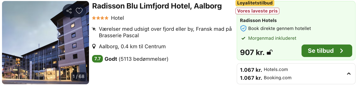 Vi har taget udgangspunkt i et weekendophold fra den 21. – 22. marts på Radisson Blu Limfjord Hotel, Aalborg, et moderne og centralt beliggende hotel med udsigt over Limfjorden og direkte adgang til byens hyggelige midtby. Hotellet ligger tæt på populære seværdigheder som Aalborghus Slot, Musikkens Hus og det livlige gågademiljø, og kombinerer stilfuldt nordisk design med høj komfort og imødekommende service.