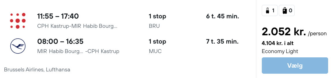 På vores flysøgningsmaskine har vi fundet billige flybilletter fra København til Monastir: