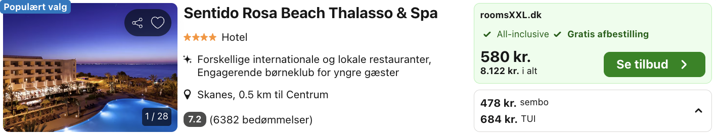 Hvis rejsen er med “Vis rejse” link, så er der tale om en pakkerejse, hvor fly og hotel bestilles på en gang.