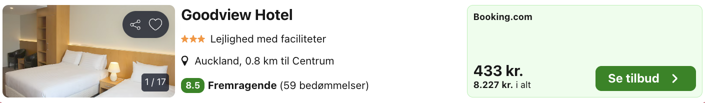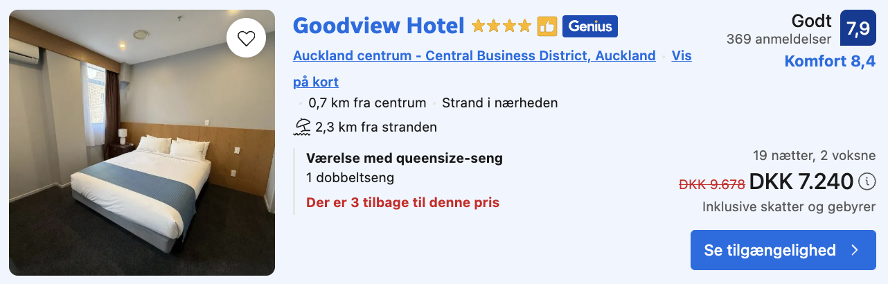 Husk at logge ind / oprette en gratis bruger på trivago samt hos Booking.com. Derved opnås den bedste pris!