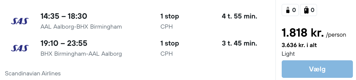 Flyprisen inkluderer kun en lille taske, men bagage kan tilkøbes.