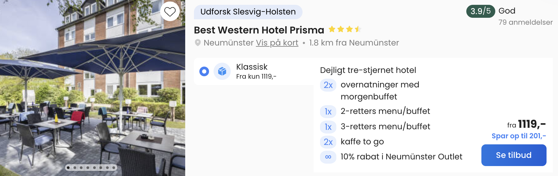 Forlænget weekend i Neumünster for kun 1.164,- per person inkl. halvpension og 10% rabat i Neumünster Outlet m.m!