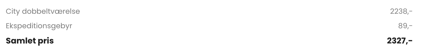 Bemærk: Den samlede pris for opholdet er 2.327,- for 2 personer i et dobbeltværelse, hvilket svarer til 1.164,- per person inkl. ekspeditionsgebyr på 89,- per booking. Vi har taget udgangspunkt i et weekendophold fra den 27. – 28. marts. Der er flere datoer til samme pris. Rejs365 er ikke et rejsebureau, men en rejseside, der finder gode tilbud! – Vi modtager kommission, men det påvirker ikke din pris! Læs mere her |