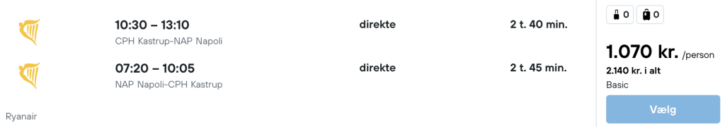 På vores flysøgemaskine har vi fundet billige billetter fra Aalborg, Billund og København til Napoli.