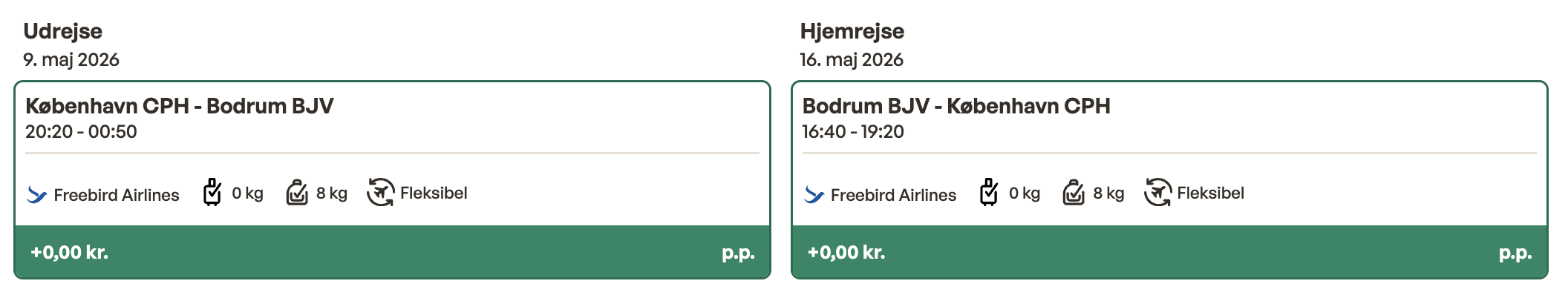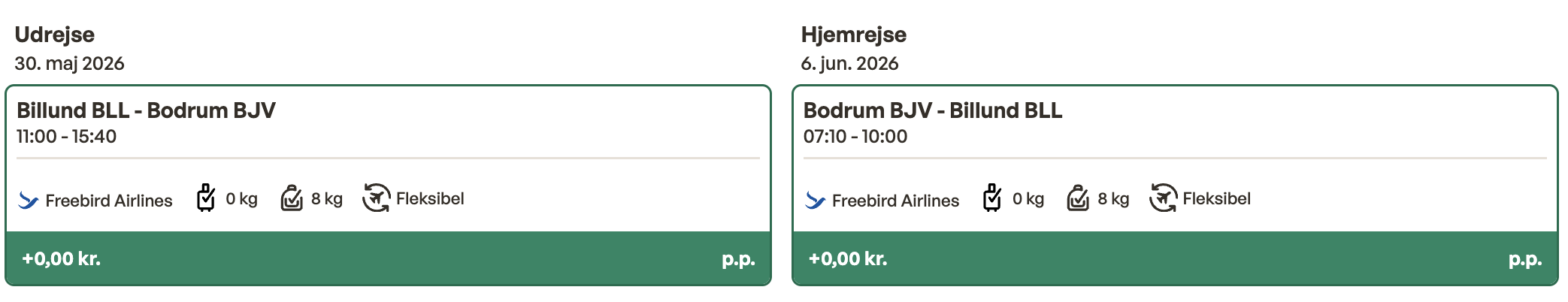 Flyprisen inkluderer en lille taske samt en indtjekket bagage.
