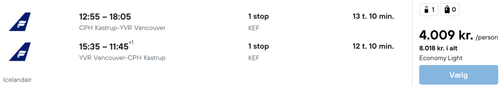 Billeje er billigt i Vancouver. Husk at tilpasse tiderne, så de passer flytiderne.