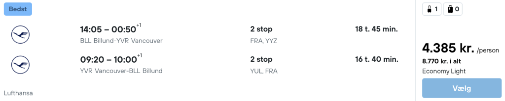 På vores flysøgemaskine har vi fundet billige billetter fra København, Billund og Aalborg til Vancouver.