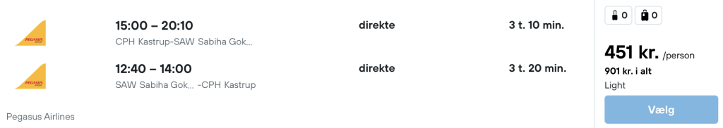 Flyprisen inkluderer kun en lille taske, men bagage kan tilkøbes.