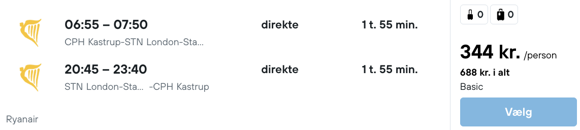 Flyprisen inkluderer kun en lille taske, men bagage kan tilkøbes.