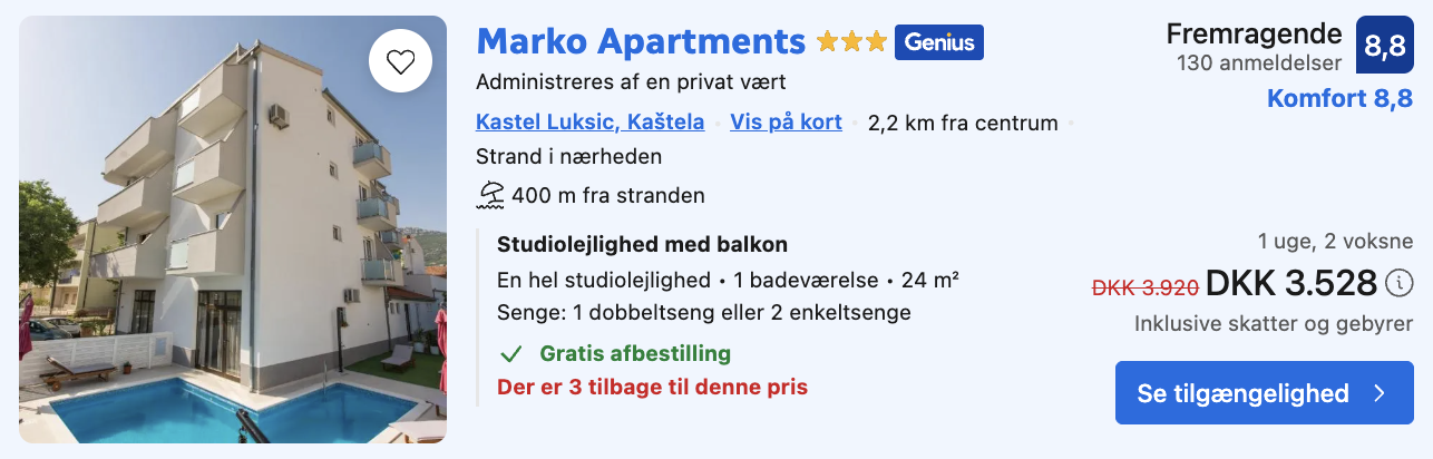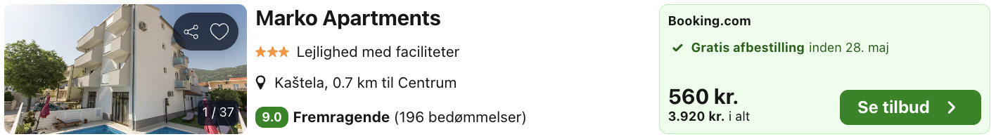 Vælg booking.com på trivago og opret en gratis bruger eller log ind. Derved opnås den billigste pris.
