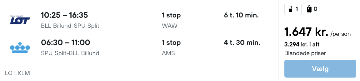 Vi har fundet billige flybilletter fra København, Billund og Aalborg til Split: