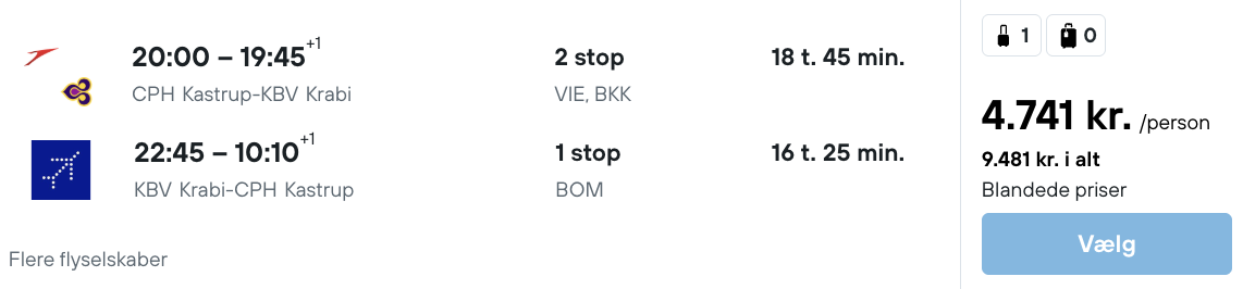 På vores flysøgemaskine har vi fundet billige billetter fra København til Krabi.