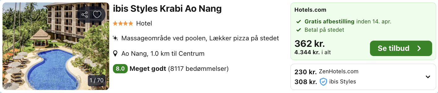 Bemærk også, at flyet lander i Krabi den 14. april. Dette er der taget højde for i hotelovernatning.