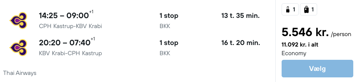 På vores flysøgemaskine har vi fundet billige billetter fra København til Krabi.