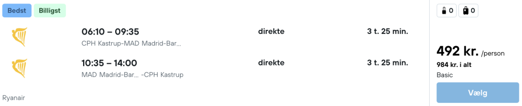 Flyprisen inkluderer kun en lille taske, men bagage kan tilkøbes.