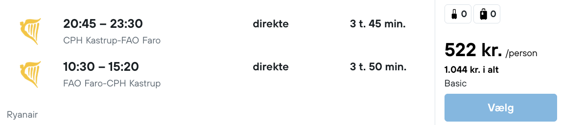 På vores flysøgemaskine har vi fundet billige flybilletter fra København til Faro på Algarvekysten: