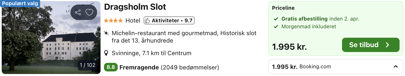 Bemærk: Den samlede pris for opholdet er 1.995,- for 2 personer i et dobbeltværelse, hvilket svarer til 998,- per person. Vi har taget udgangspunkt i et ophold i påskeferien fra den 5. – 6. april. Rejs365 er ikke et rejsebureau, men en rejseside, der finder gode tilbud! – Vi modtager kommission, men det påvirker ikke din pris! Læs mere her |