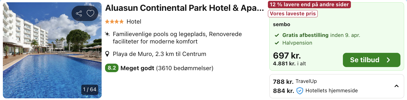 Hvis rejsen er med “Vis rejse” link, så er der tale om en pakkerejse, hvor fly og hotel bestilles på en gang.